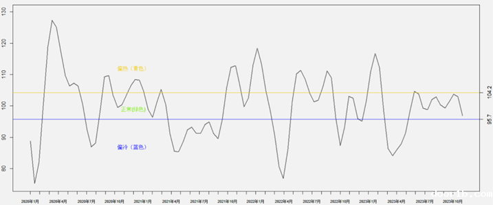 图1 中国铜需求量景气指数2020年1月至2023年11月