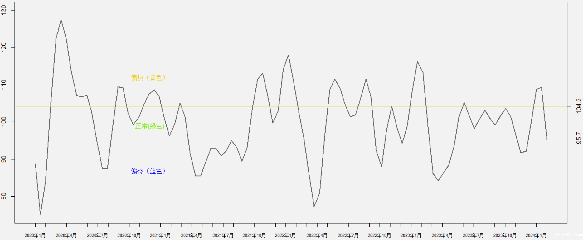 图1 中国铜需求量景气指数2020年1月至2024年2月