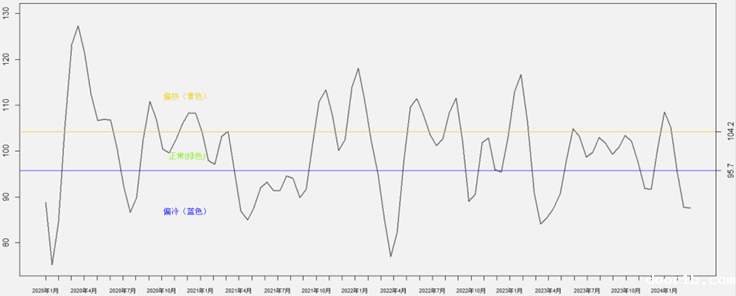图1 中国铜需求量景气指数2020年1月至2024年3月